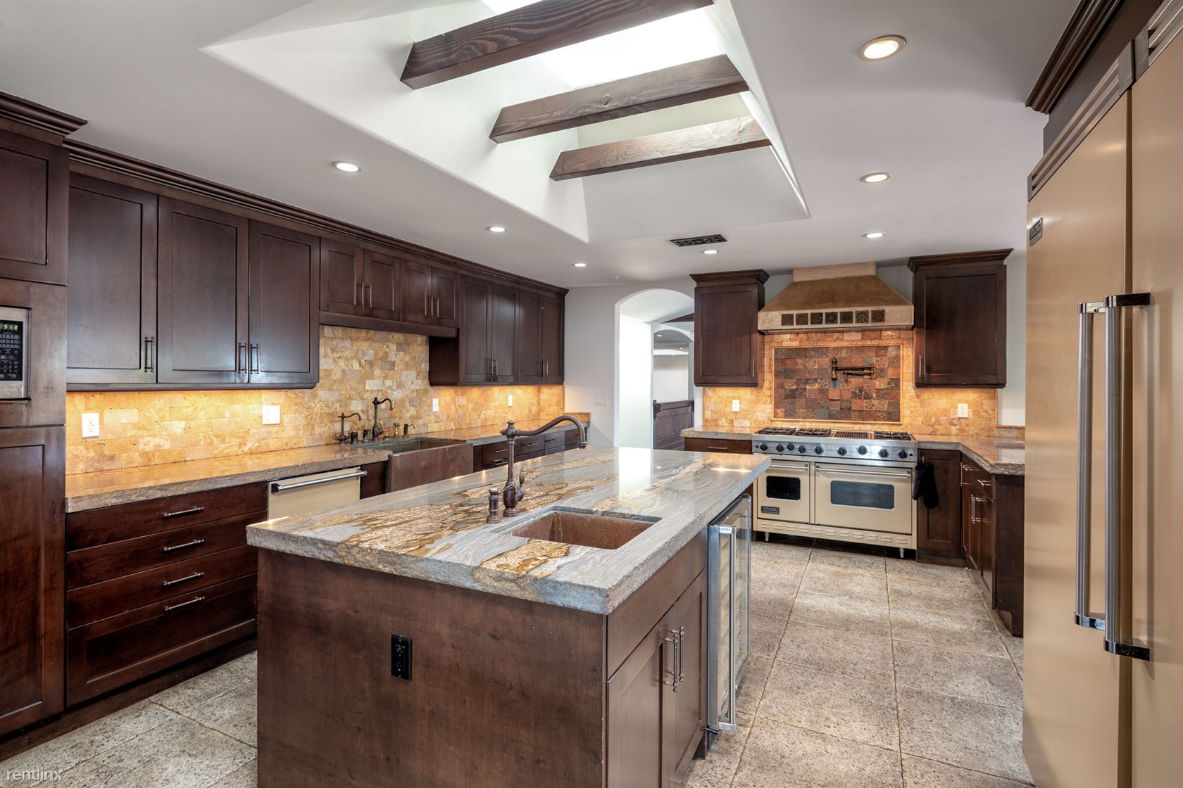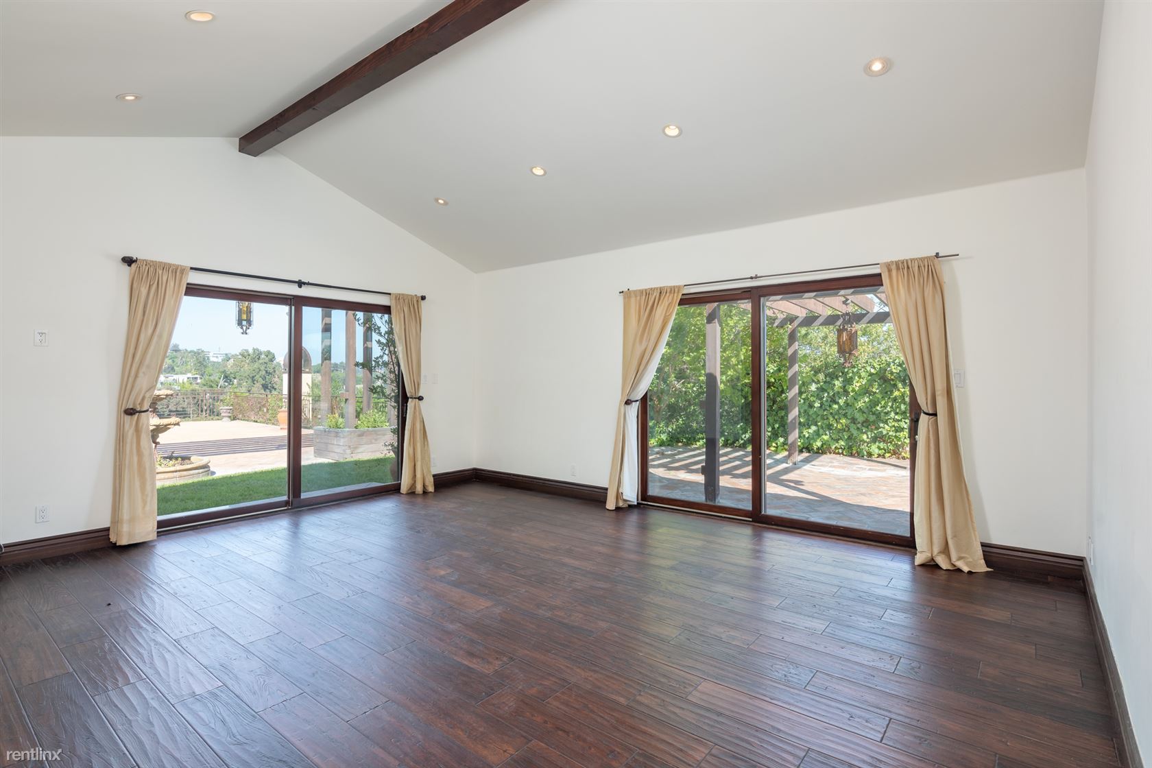 Welcome home to this expansive Contemporary Single Level Mediterranean home w/ secluded guest house (2 bed) + it's own private entry. This one of a kind home features 4 bed(plus office)4 baths w/ an opportunity to convert into a 5th bedroom if needed. Plenty of space in this very bright home & a 14,000+ sf lot w/pool - great for entertaining. Skylights & high ceilings are found throughout the property along with beautiful exposed wood beams. The custom home features a gourmet chefs kitchen w/oversized granite center island & luxury Viking Appliances, an office/lounge w/fireplace upon entry, wood floors, bar & and lovely stone bathrooms. There's privacy, pool, hot tub, & an incredible guest house w/its own kitchen, full bath, + balconies making it feel like it's a separate property. The guest house can be a great rumpus room from the kids, a private gym, gallery, music studio, maids quarters, etc. Located on one of the best streets, great neighbors, and beautiful views of Brentwood and beyond. Avail Mid to Late July. (RLNE5031675)